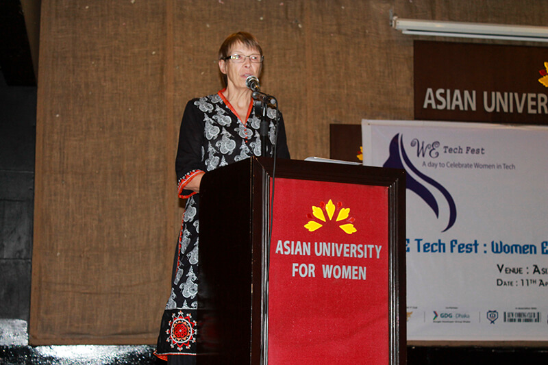WE Tech Fest: Women Empowerment through Tech Fest” is focusing on women’s visibility and involvement in IT field. This is one of the first initiatives taken in this region to promote women in the technology field. It aims to ensure a large number of women’s participation in IT Development. Moreover, AUW IT Club always encouraged female leaders from Asian University for Women in Technology. Therefore, for the first time, both AUW IT Club and Google Developer Group took an initiative to organize a giant tech festival to celebrate a day of Women in Technology.